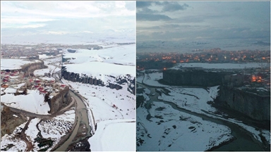 Yer yer kar da bulunan ormanlık alanda, sisin oluşturduğu manzara dronla görüntülendi.