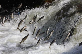 Balık göçünün yoğun olarak görüldüğü Erciş ilçesindeki Bendimahi Çayı'nda balık bendine gelen yerli ve yabancı turistler, suyun akışının tersine yüzen ve önlerine çıkan engelleri adeta uçarak aşmaya çalışan balıkların eşsiz yolculuğunu izlemenin keyfini yaşıyor.