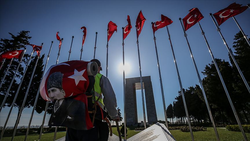 Edirne'nin İpsala ilçesinden şehitler anısına yola çıkan 31 yaşındaki Yılmaz Bayraktar, yürüyerek Çanakkale'ye geldi.