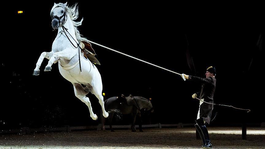 Dünyanın en eski ve tek kraliyet binicilik okulu "İspanyol Biniş Okulu", kuruluşunun 450. yıldönümünü sebebiyle İngiltere'nin başkenti Londra'da gösteri turu düzenledi.