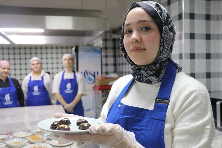 ISUBÜ'nün Bahçelievler Mahallesi'ndeki yerleşkesinde süren çalışmalarda, Isparta'ya özgü gül ve elma çikolatayla buluşturuldu.