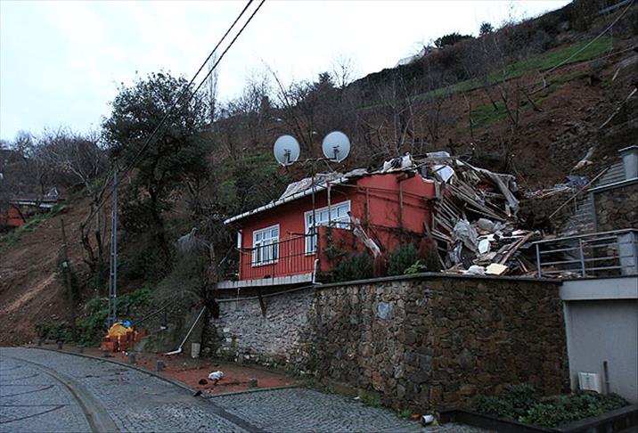 Beşiktaş'ta meydana gelen toprak kaymasında 2 katlı bir binanın üst katı çöktü.