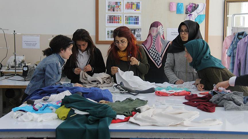 Van'da liseli kız öğrenciler, yakınlarından ve çevrelerinden topladıkları kıyafetleri moda tasarımı dersinde onarımdan geçirerek ihtiyaç sahibi Suriyeli ailelere hediye ediyor.