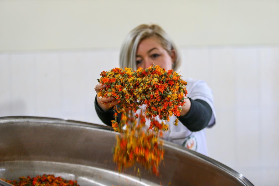 Bitkiyi damlama sulamayla büyüttüklerini dile getiren Papurlu, "Hazirandan bu yana hasat yapıyoruz. Şubatta yeni dikim yapmamız gerekiyor, o zamana kadar hasada devam edeceğiz. Beklentimizin üzerinde bir verim elde ettik, çok mutluyuz. Çiçeklerimiz günlük toplandıktan sonra makinada kurutuluyor. Sonrasında paketlenerek satışa sunuluyor." dedi.