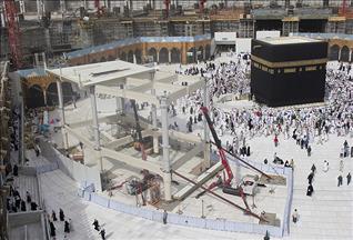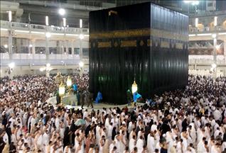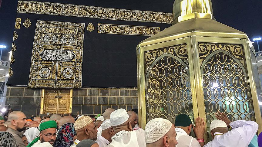 Kutsal topraklardaki yaklaşık 2 milyon hacı adayının vakfe için Arafat'a çıktığı Arefe gününde sabah namazının ardından Kabe'ye yeni örtüsü yerleştirildi.