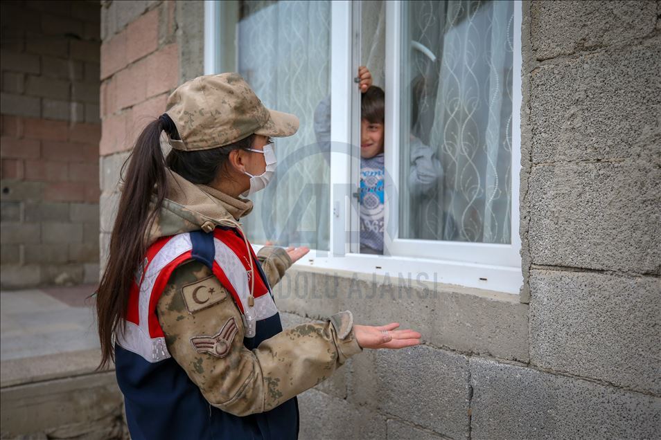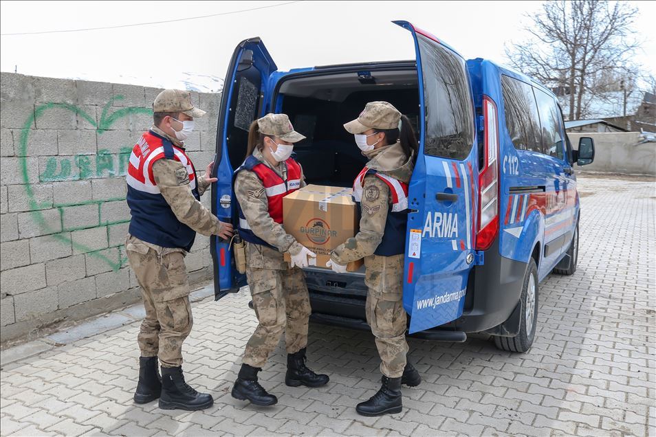 Van'da kadın jandarma ekipleri, koronavirüs tedbirleri kapsamında evden çıkmaları kısıtlanan 65 yaş üstü kişiler ile kronik hastalığı bulunanları evlerinde ziyaret ederek ihtiyaçlarını karşılıyor.