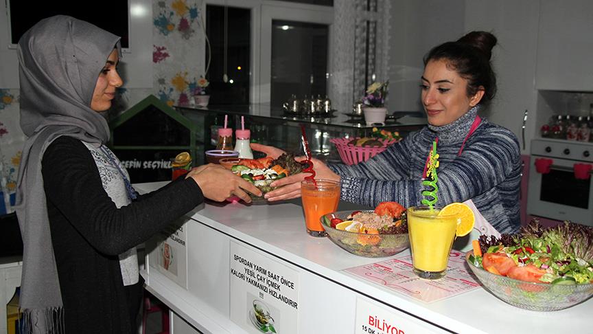 Salata çeşitleri, balık, köfte ve birbirinden farklı birçok diyet yemeğin servis edildiği restoranda, 4 kişiye de istihdam sağlandı.