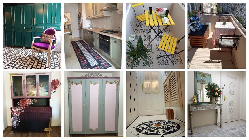 Evlerinin dönüştürdükleri bir köşesini ya da boyayarak yeniledikleri mobilya ve ev eşyalarını sosyal medyada "Evde kal dönüştür" sloganıyla paylaşan kadınlar, bir yandan yaratıcılıklarını zorlarken, diğer yandan farkındalık oluşturuyor.