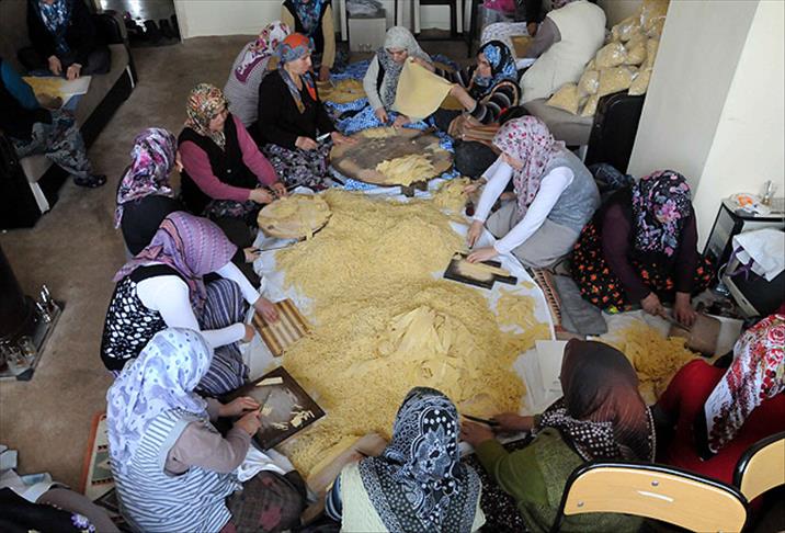 110 kadını el becerilerine göre gruplara ayırdıklarını ve 3 farklı merkezde ahşap el işleri, ahşap oymacılık, ahşap boyama, telkari işleri, boncuk işleme gibi faaliyetleri gerçekleştirdiklerini ifade eden Erdurucan, şimdi ise kadınların 2 ton erişte siparişini yetiştirmeye çalıştıklarını anlattı.
