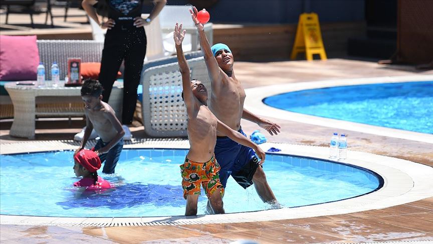 Ekipler, ailesinden izin aldıktan sonra 10 yaşındaki çocuk ile 2 kardeşini de bir spor merkezinin havuzuna götürdü. Havuzda doyasıya eğlenen çocuklar, ardından Antalya Akvaryumu'nu gezmenin mutluluğunu tattı.
