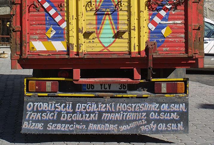 Erzurum Şoförler ve Otomobilciler Odası Başkanı Hanefi Topçuoğlu, AA muhabirine yaptığı açıklamada, 1 Temmuz tarihinde yürürlüğe giren Türk Ticaret Kanunu'na rağmen bazı kamyon şoförlerinin kamyonlarının arkasında yer alan yazılardan vazgeçemediklerini söyledi.