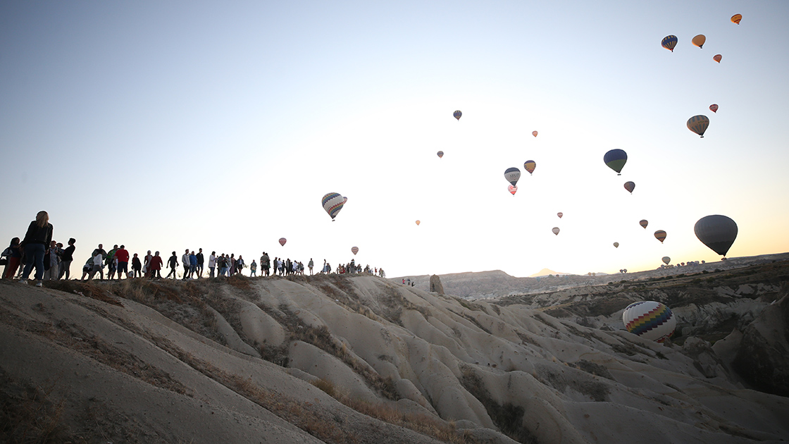 Peribacaları, doğal kaya oluşumlarıyla kaplı vadileri, yer altı yerleşim merkezleri, kayadan oyma manastırları ve ilginç coğrafi şekilleriyle konuklarını hayran bırakan UNESCO Dünya Kültür Mirası Listesi'ndeki Kapadokya'da, sıcak hava balon turlarına olan ilgi her geçen yıl artıyor.
