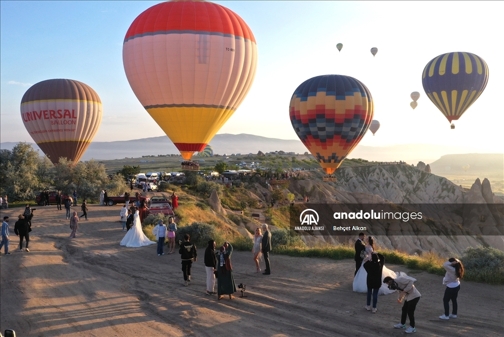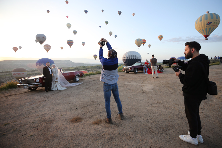 "Gün doğumunda birkaç saat çekim yapılıyor, gün batımında da isteyen oluyor ama en çok fotoğraf çekimi balonların kalkış vaktinde oluyor. Klasik araç ve at turları bölgede gün doğumu ile başlıyor. Aynı anda yüzlerce turist ve balayı çifti fotoğraf çektiriyor. Balonlar üzerinden geçiyor, yanına iniyor, güzellikler içinde vaktini geçiriyorlar. Bölgedeki turizm sektörünün yüzde 30'unu fotoğraf çekiminin oluşturduğunu düşünüyoruz. Çok fazla talep var. Günden güne istekler de değişiyor. Bu fotoğrafçıların da yaratıcılığı ile alakalı, bölgemiz bu yönden çok zengin."