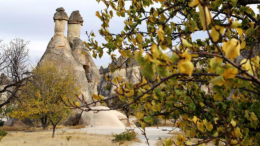 UNESCO'nun "Dünya Doğal ve Kültürel Miras Listesi"nde yer alan Kapadokya'da, peribacaları ve doğal kaya oluşumlarıyla kaplı vadiler, sonbaharın renk tonlarıyla donandı.