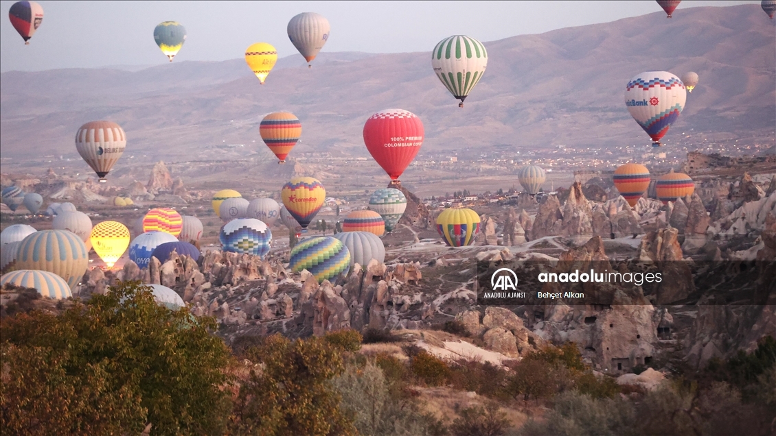Dünyada sıcak hava balon turunun en yoğun yapıldığı turizm merkezi Kapadokya'da, bu yılın ocak-ekim döneminde 556 bin 306 yerli ve yabancı turist, bölgeyi gökyüzünden izledi.