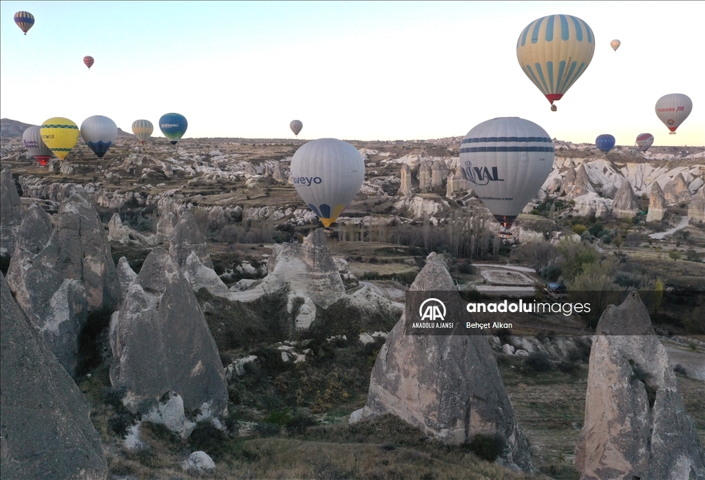 Balon pilotlarından Oğuzhan Alkan ise Kapadokya'nın konuklarına yılın her dönemi farklı bir manzara sunduğunu, bu doğal güzellikleri izlemek isteyenlerin tura ilgi gösterdiğini kaydederek, "Kapadokya, sıcak hava balonculuğu açısından dünyadaki en gözde uçuş alanı. Sivil Havacılık Genel Müdürlüğünün kontrol ve denetimleriyle bölgede dünyanın farklı yerlerine kıyasla güvenli uçuş sağlanıyor." ifadesini kullandı.