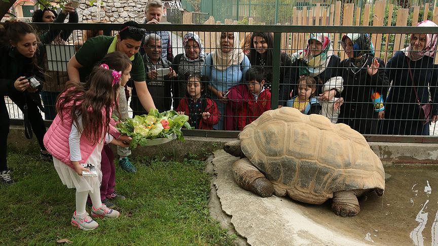 Nesli tükenme tehlikesi altında bulunan türlerden olan dev aldabra kaplumbağasının 97. doğum günü dolayısıyla hayvanat bahçesinde etkinlik düzenlendi.