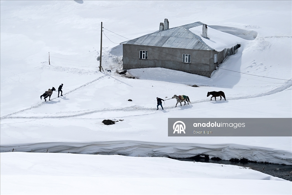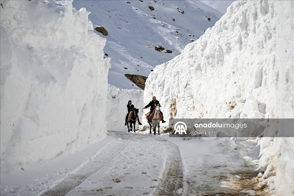 Yeni bir yola ihtiyaçlarının olduğu ifade eden Murat Koç da "Bizim için kış demek çile, zorluk demek. Yılın 6 ayını zorluklarla geçiriyoruz. Kar ve fırtına nedeniyle bazen bir ay dışarı çıkamıyoruz. Çığ noktalarında metrelerce kar var. Erzakımızı atlarla taşıyoruz." dedi.
