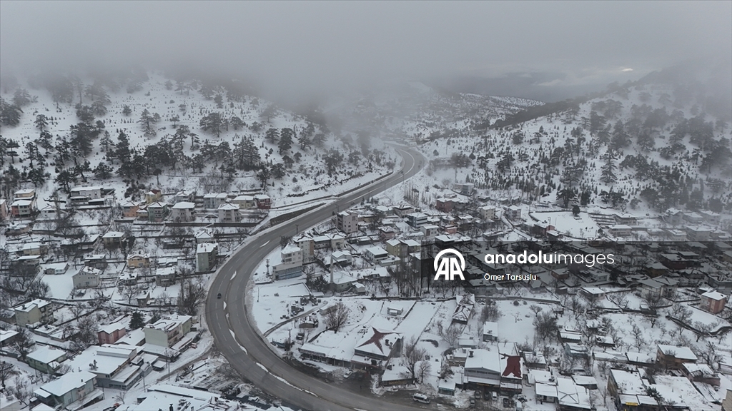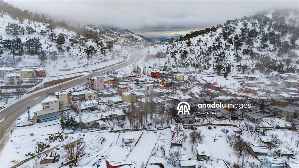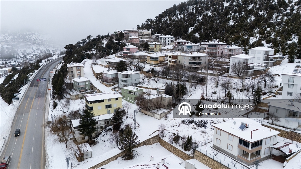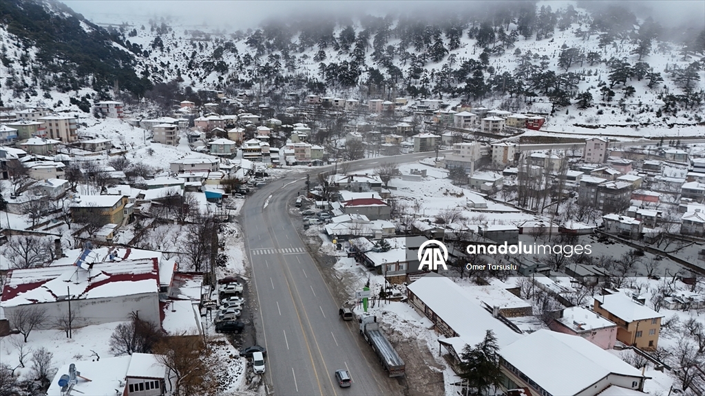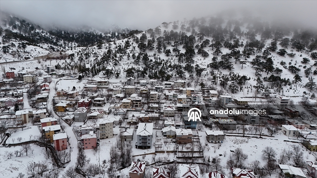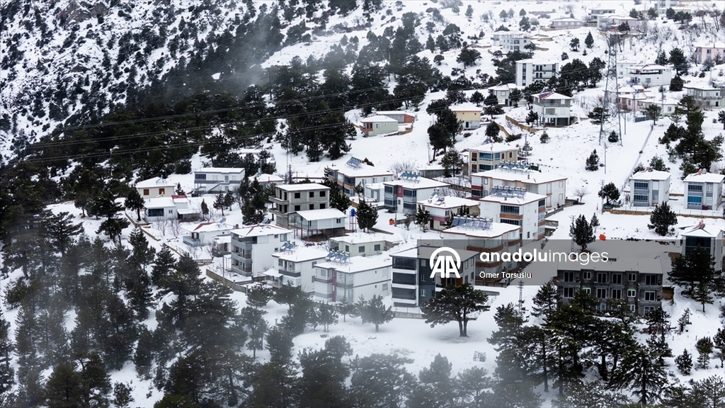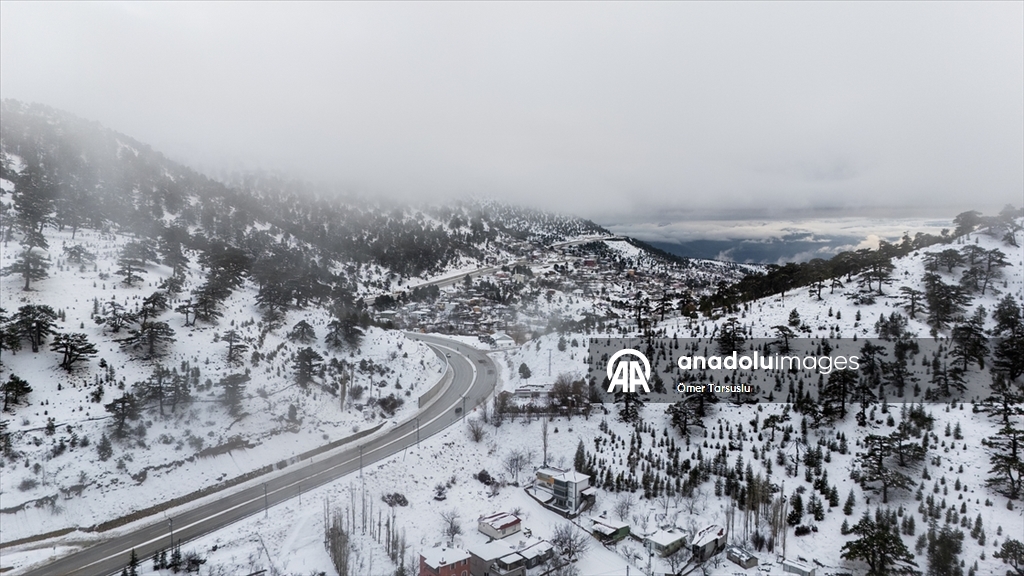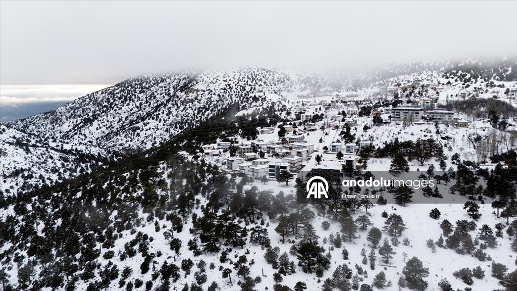 Mersin'in Mut ilçesinde kar yağışının ardından beyaz örtüyle kaplanan Sertavul Yaylası'ndaki kış manzarası dronla görüntülendi.