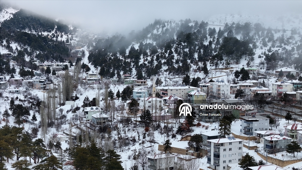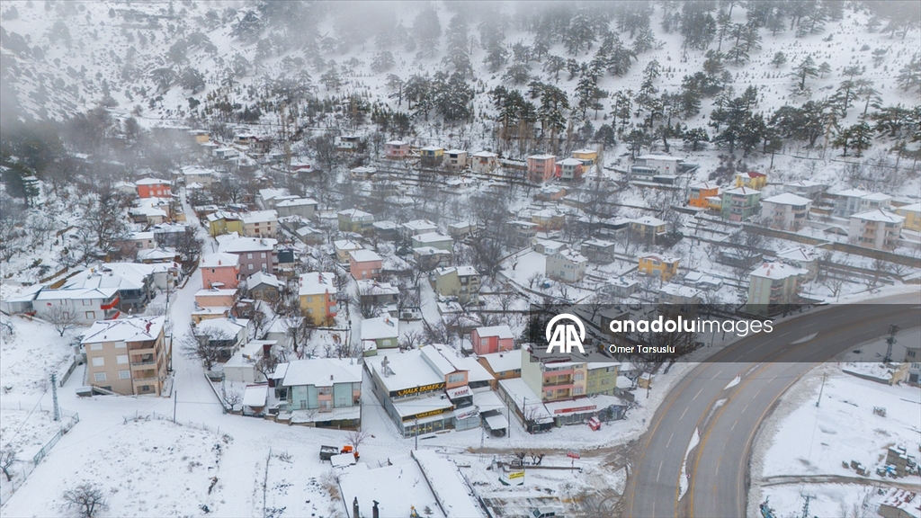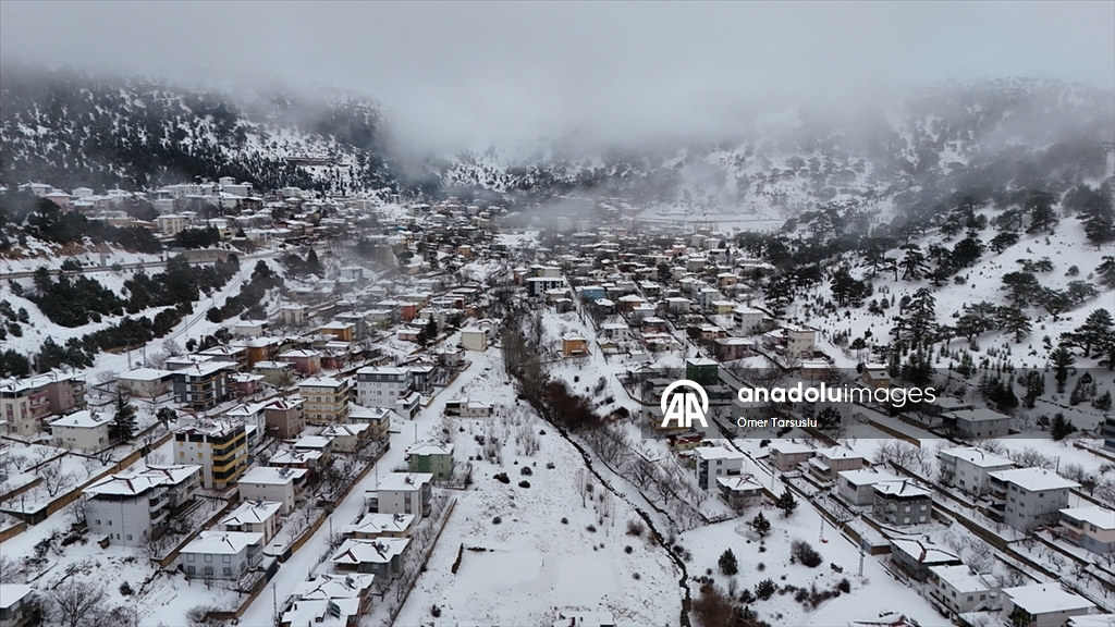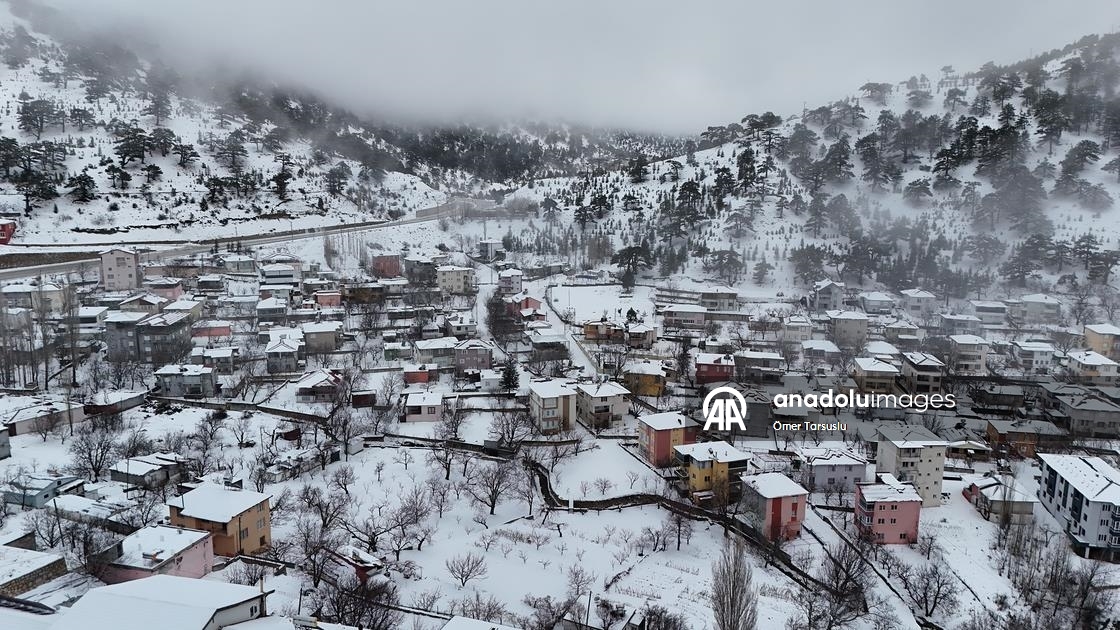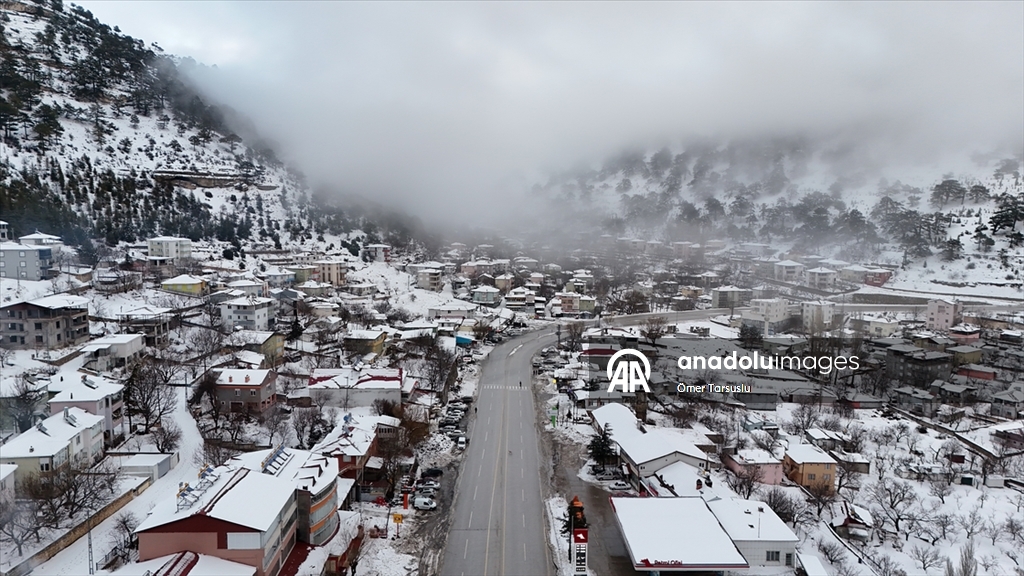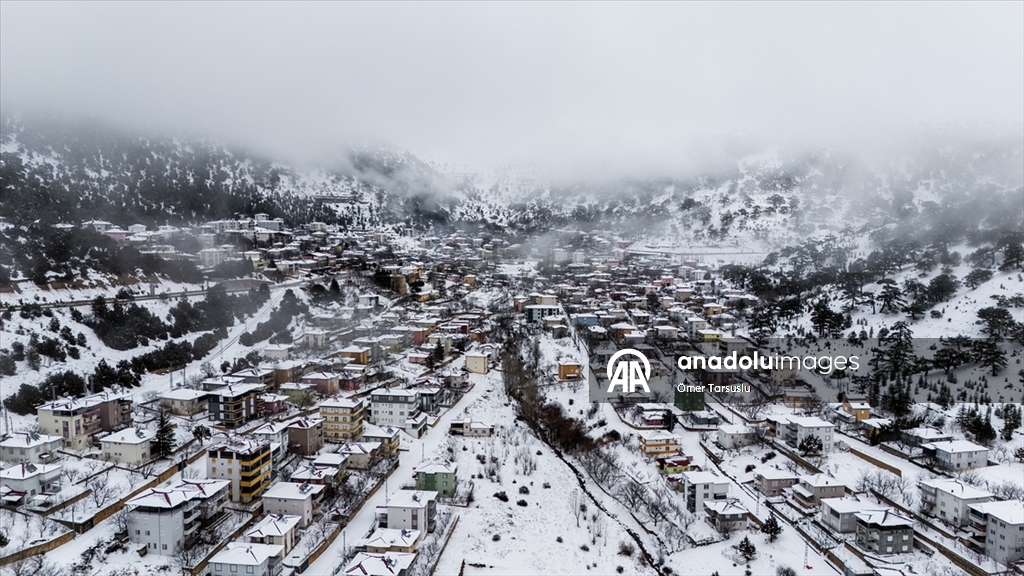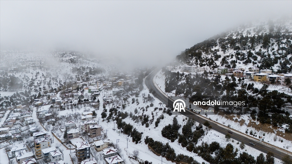 Mersin'in Mut ilçesinde kar yağışının ardından beyaz örtüyle kaplanan Sertavul Yaylası'ndaki kış manzarası dronla görüntülendi.