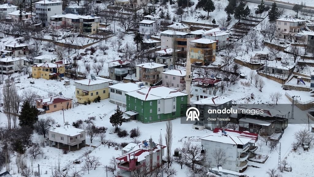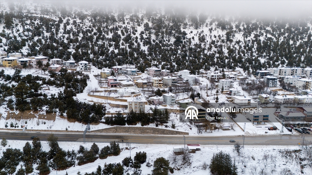 Bölgedeki çam ormanları, yollar ve evlerin çatıları beyaza büründü.