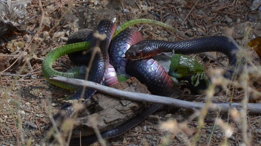Kara yılanın kızdırılmadığı takdirde kesinlikle insanlara saldırmadığını vurgulayan Olgun, "Bu yılanların doğadaki en büyük besin kaynakları küçük memelilerle birlikte kuşlar, kendi türünden yılanlar ve kertenkelelerdir. Dolayısıyla kara yılanın iri yeşil kertenkeleyi yemesi de doğada görülen durumlardan bir tanesidir." dedi.