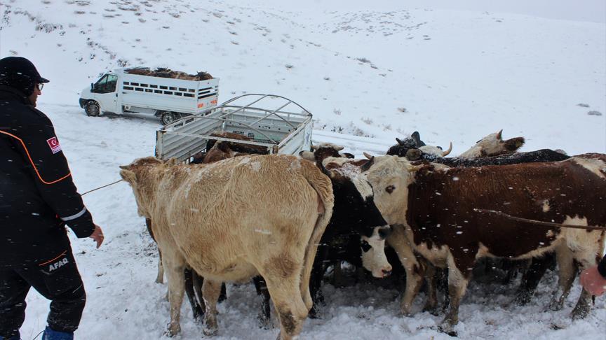 Çobanların yakınları, 37 büyükbaş hayvanı getirdikleri 5 kamyonete ekiplerin de yardımıyla yükledi.
