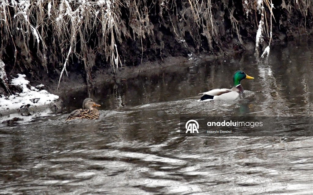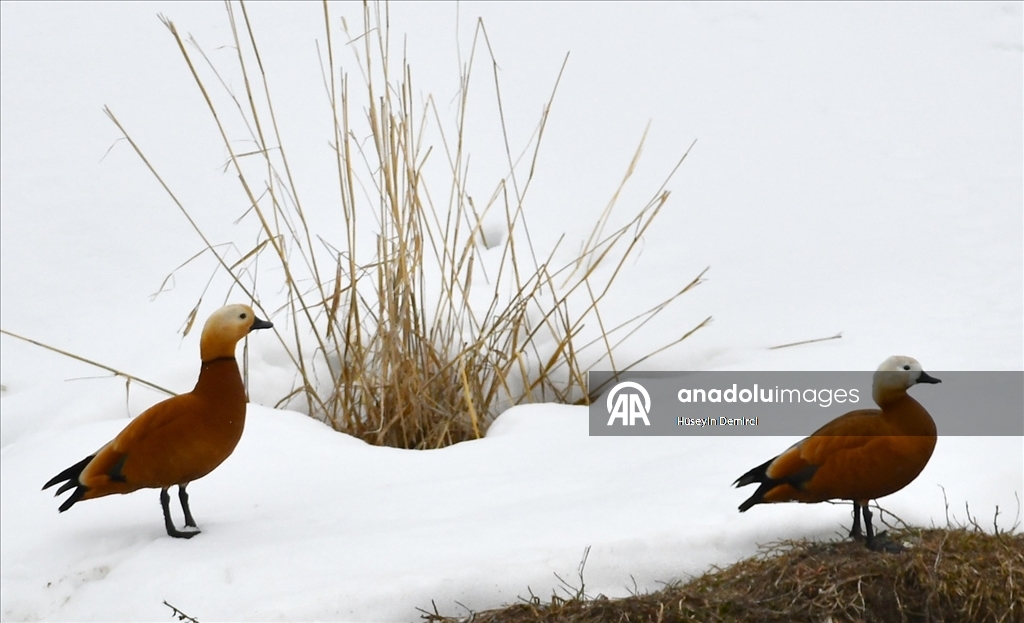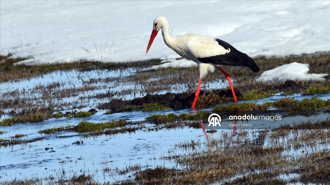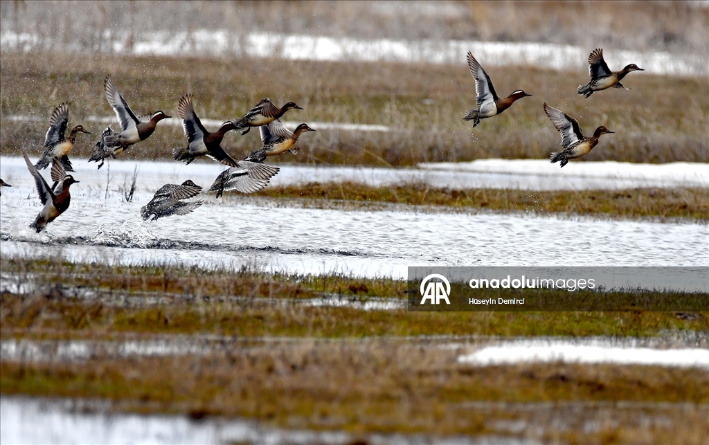Kars'ın Sarıkamış ilçesindeki bazı sulak alanlar, göçmen kuşlarla renklendi.