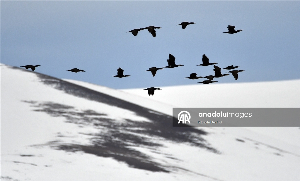 Kars'ta sulak alanlar göçmen kuşlarla şenlendi