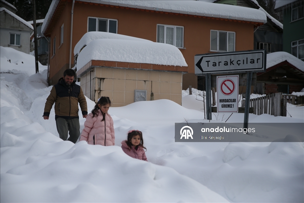 Köy muhtarı Kamil Tığlı ise kış aylarında köylerinde kar yağışının etkili olduğunu vurgulayarak, "Köyde kış aylarında 15, yaz aylarında ise 150 hane yaşar. Kışın çoğu insan İstanbul'a gidiyor. Yollarımızın açılmasında emek gösterenlere de teşekkür ederim. Kardan şikayetçi değiliz. Yazın hane çok olduğu için kişi başına bir kedi bile düşmüyor. Kışın ise her taraf kar, hayvanlar bir yere gidemiyor. Hocam sağ olsun, ilgileniyor." diye konuştu.