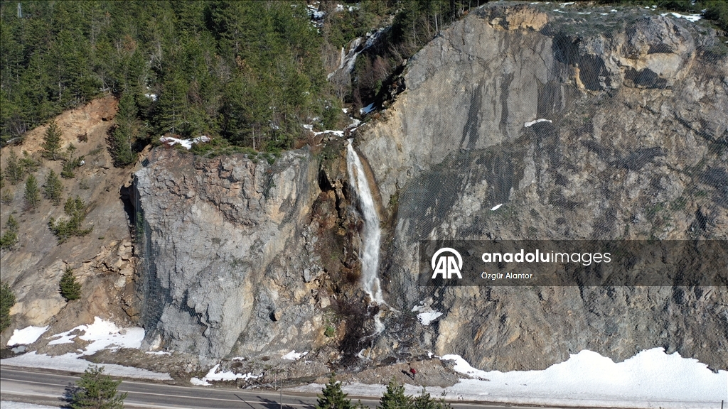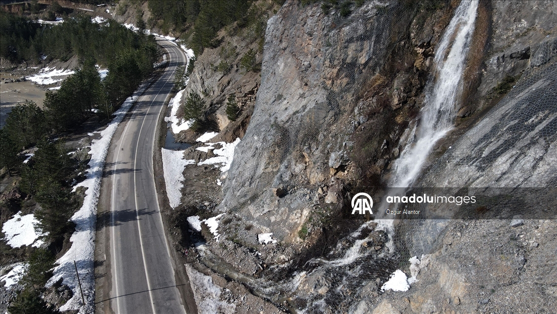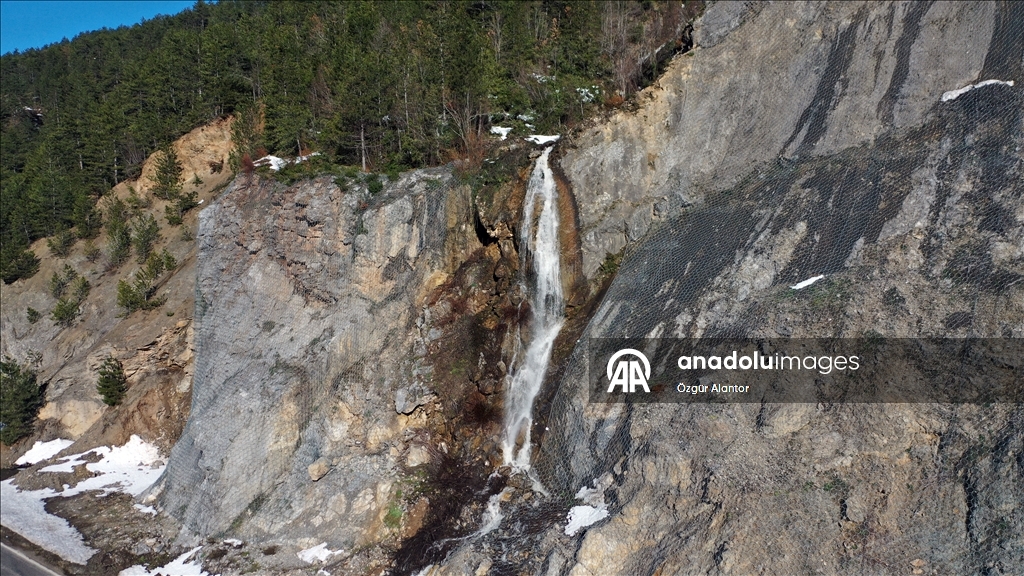 Kastamonu'da karların erimesiyle oluşan "kar şelalesi" görsel şölen sunuyor
