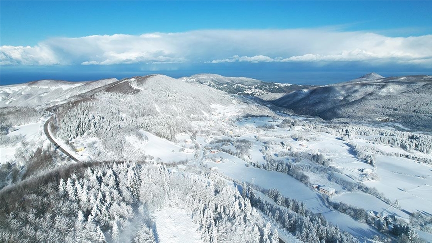 Abana güzergahı tarafında Arpalıkbaşı'dan başlayarak Odayboğazı, Ortasökü ve Çiçekyayla mevkileri ile Yaralıgöz Geçidi'ne doğru yoğunlaşan kar yağışıyla birlikte ormanlar beyaza büründü.