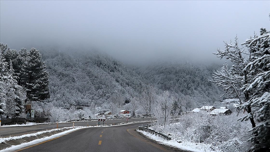 Ilgaz Dağı Milli Parkı güzergahında yağışın ardından ormanlar beyaz örtüyle kaplandı.