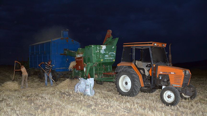 Türkiye'de tarım ve hayvancılık bakımından önemli yere sahip Kars'ın Sarıkamış ilçesinde çiftçiler, havaların aşırı sıcak olması nedeniyle gece de hasat yapıyor.