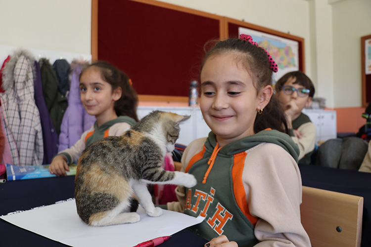 Sınıf öğretmeni Rabia Kazancıoğlu, AA muhabirine, öğrencilerin kediyi çok sevdiğini, bu sayede çocukların hayvan sevgisinin pekiştiği söyledi.