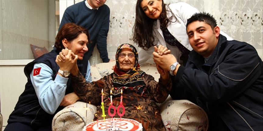 Asırlık nine 100. yaşını ''sağlık melekleri'' ile kutladı.***