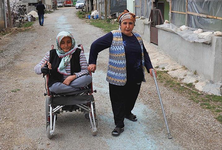 Toros Dağları'nın eteğinde kent merkezine 60 kilometre uzaktaki Arslanköy beldesinde, yaşlı anne ve babasının yanı sıra kendisi gibi cam kemik hastası olan ablasıyla yaşayan Aynur Alp, 21 yaşındayken ilk kez yürümeye başladığı günden beri ailesinin yükünü omuzluyor.