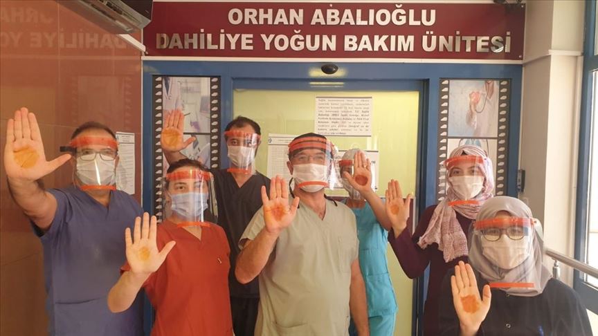 Ağır hastaların iyileşmesi için kendi hayatlarını ortaya koyan sağlık görevlileri, ellerine yaktıkları kına ile dikkati çekiyor.