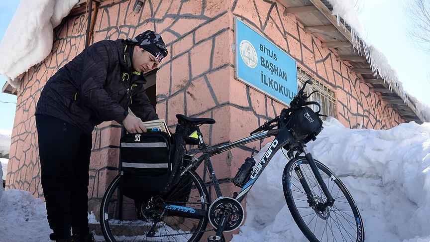 Köy çocuklarının 'bisikletli' kütüphanecisi