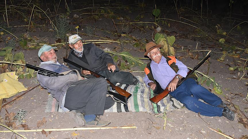 Bilecik'in Gölpazarı ilçesine bağlı Çukurören köyünde yaşları 75 ila 86 arasında değişen dedeler, ayçiçeği ve buğday tarlalarına zarar veren yaban domuzlarına karşı nöbet tutuyor.