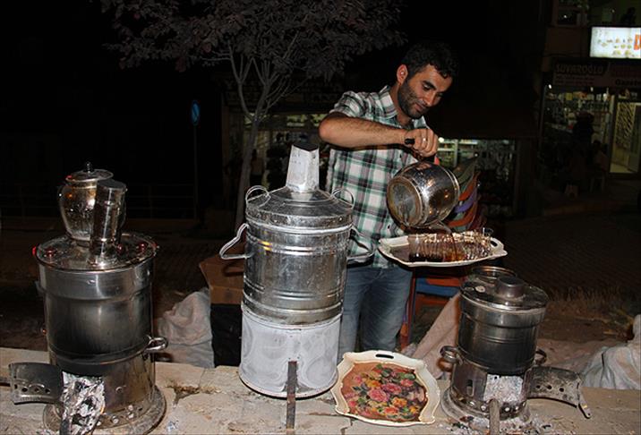 Yaz mevsiminin gelmesiyle ilçe merkezindeki bir parkta çayı demleyerek satan Bay, ramazan ayında da iftar sonrası vatandaşlara hizmet veriyor.