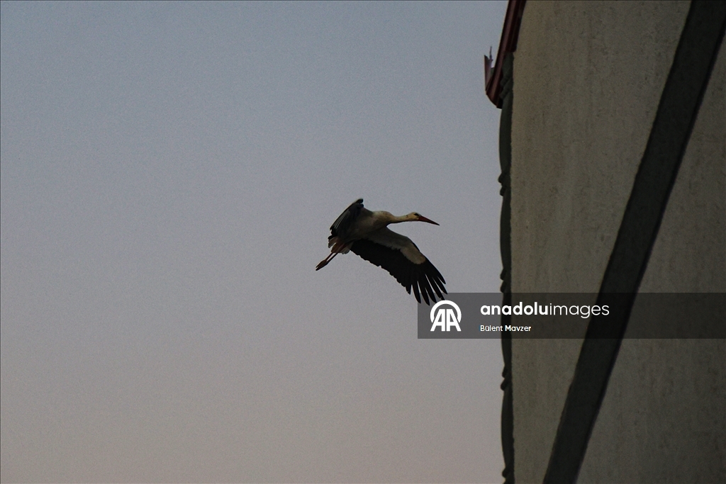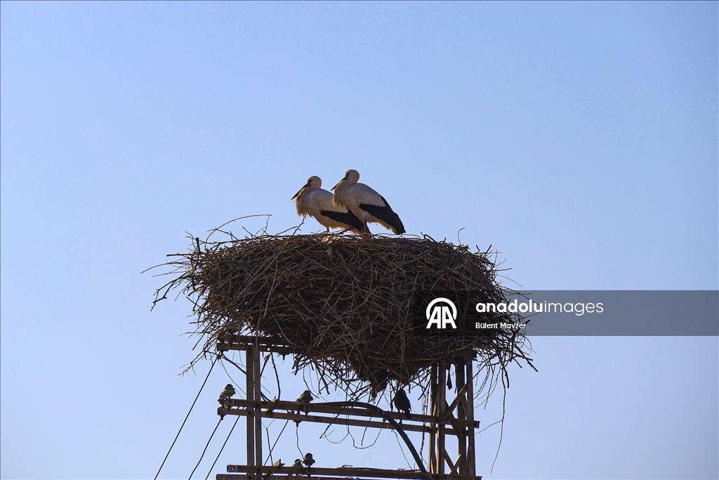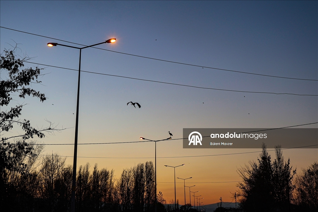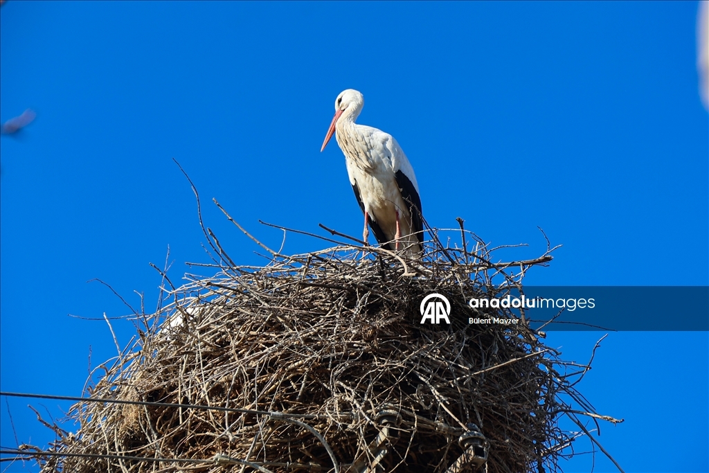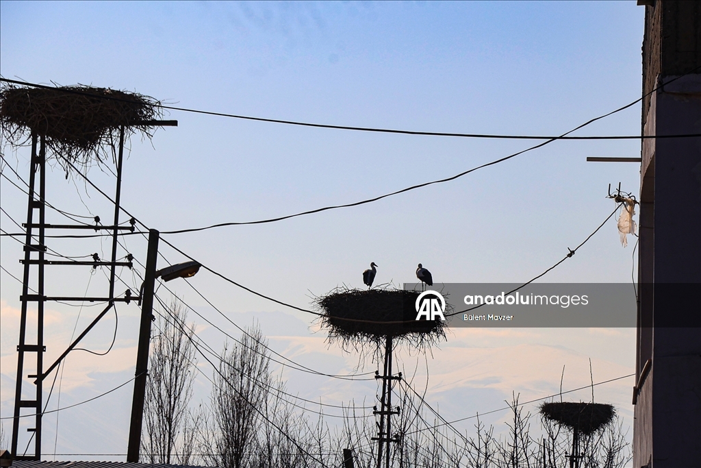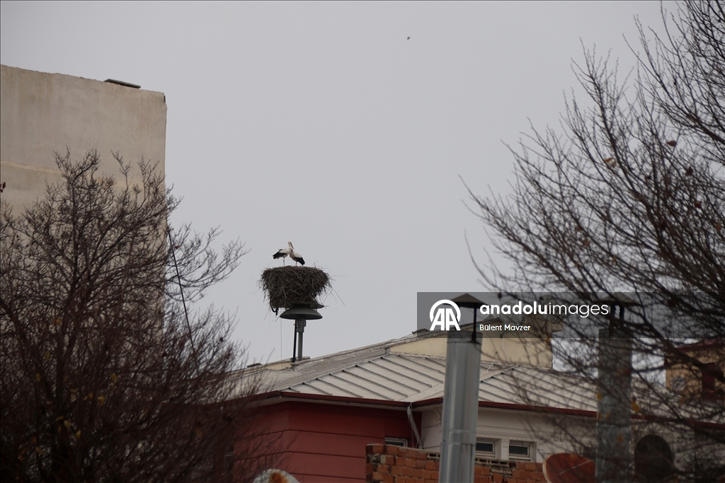 Baharın habercisi olarak bilinen leylekler, iklim değişikliğinin etkisiyle Iğdır'daki yuvalarından kış mevsiminde de göç etmedi.