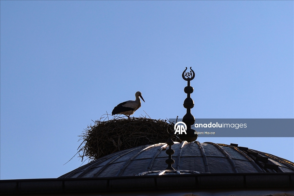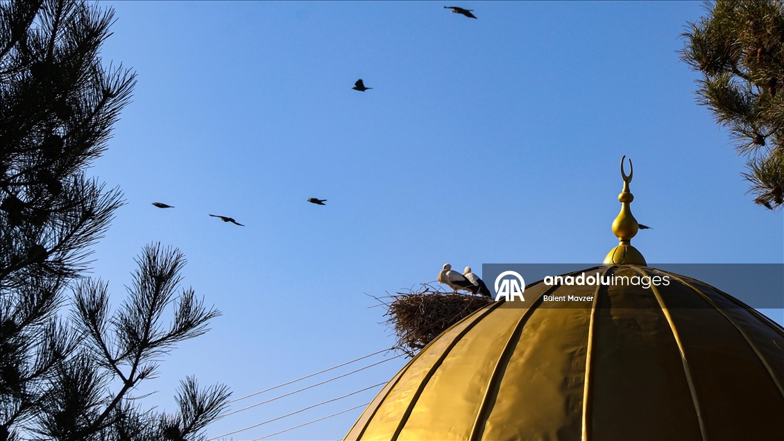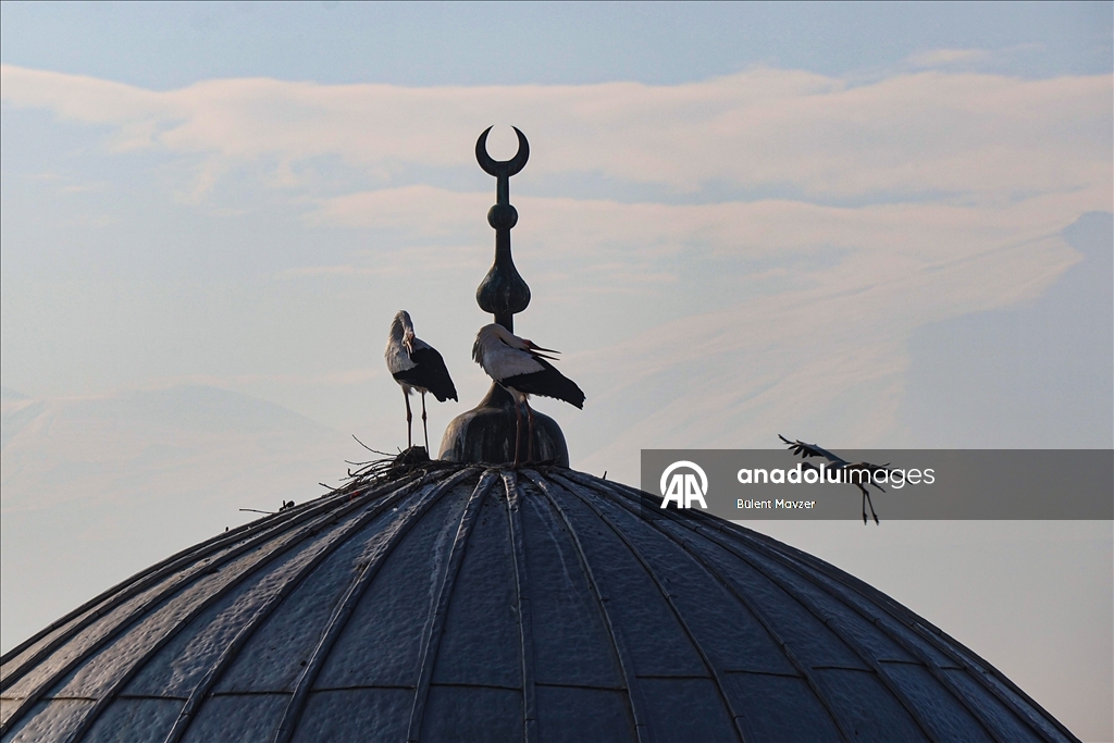 Karakoyunlu ilçesinde imamlık yapan Kazım Şıktaş ise caminin kubbesindeki leyleklerin göç etmeden kışı burada geçirdiğini anlattı.