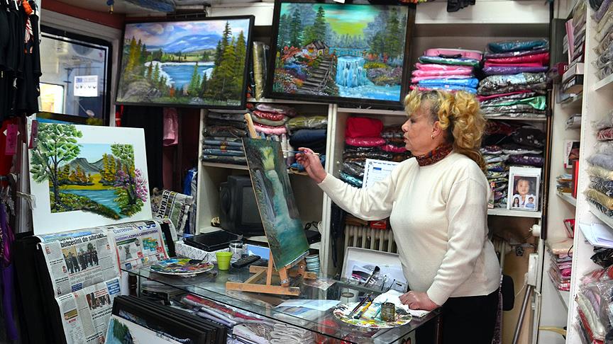 Kütahya'da yıllardır esnaflık yapan Naciye Zeytin (67), AA muhabirine yaptığı açıklamada, esnaflığın yanı sıra el sanatlarına meraklı olduğu için resim yapmaya karar verdiğini söyledi.