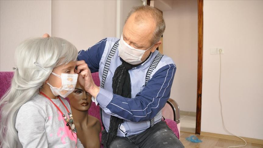 Tedavi sürecinde saçları dökülen minik Gülcihan'ın üzüntüsüne dayanamayan anne Demir, ilçede lösemili hastalar için ücretsiz peruk yapan kuaför Kenan Kaya'ya başvurdu. Peruğu hazırlayan Kaya, Gülcihan'ı evinde ziyaret etti.