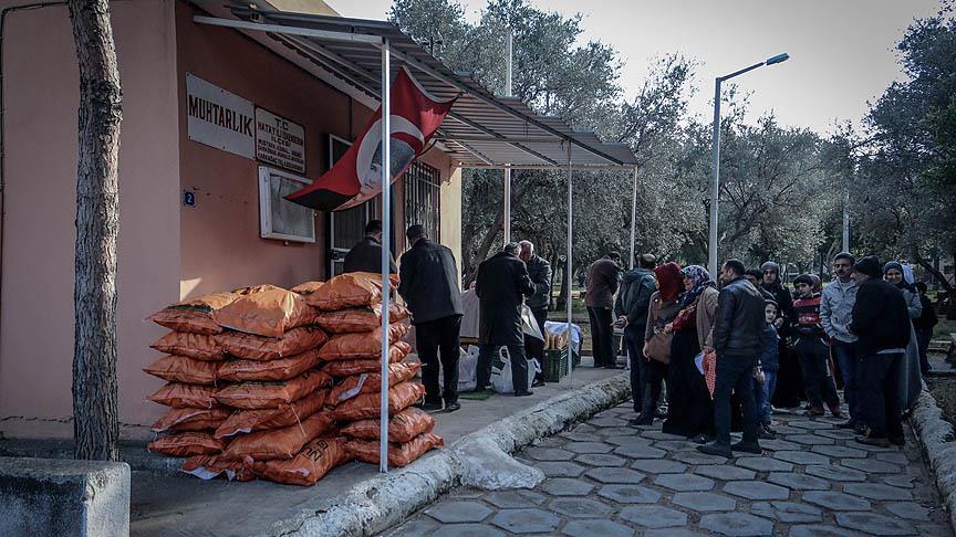 Yaşar, 7 ay önce muhtarı olduğu mahallede, biriktirdiği 5 aylık maaşıyla gıda malzemeleri ve kömür alarak, Suriyeli 70 aileye yardımda bulundu.