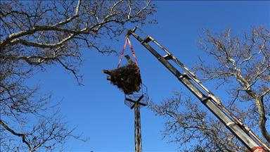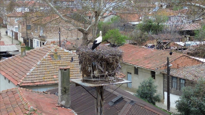Trakya Elektrik Dağıtım AŞ (TREDAŞ) ekiplerince mahalle meydanında kurulan platform her sene leyleklere yuva oluyor.