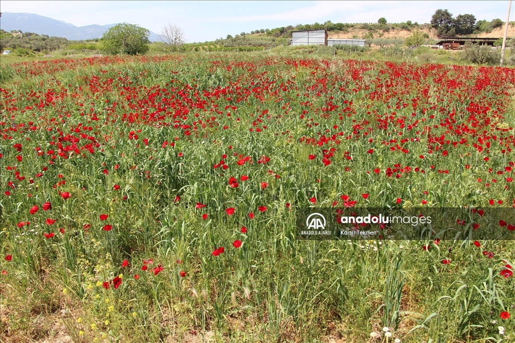 Manisa'da tarlaları gelincikler süsledi
