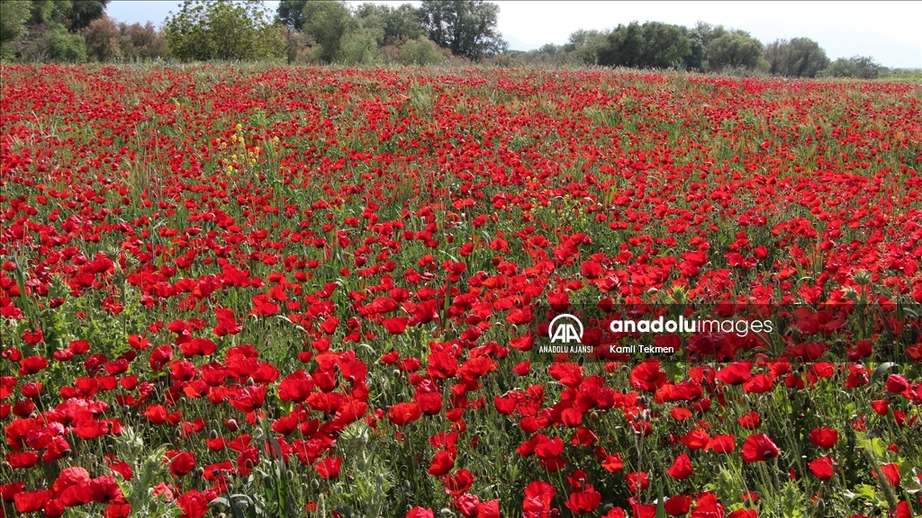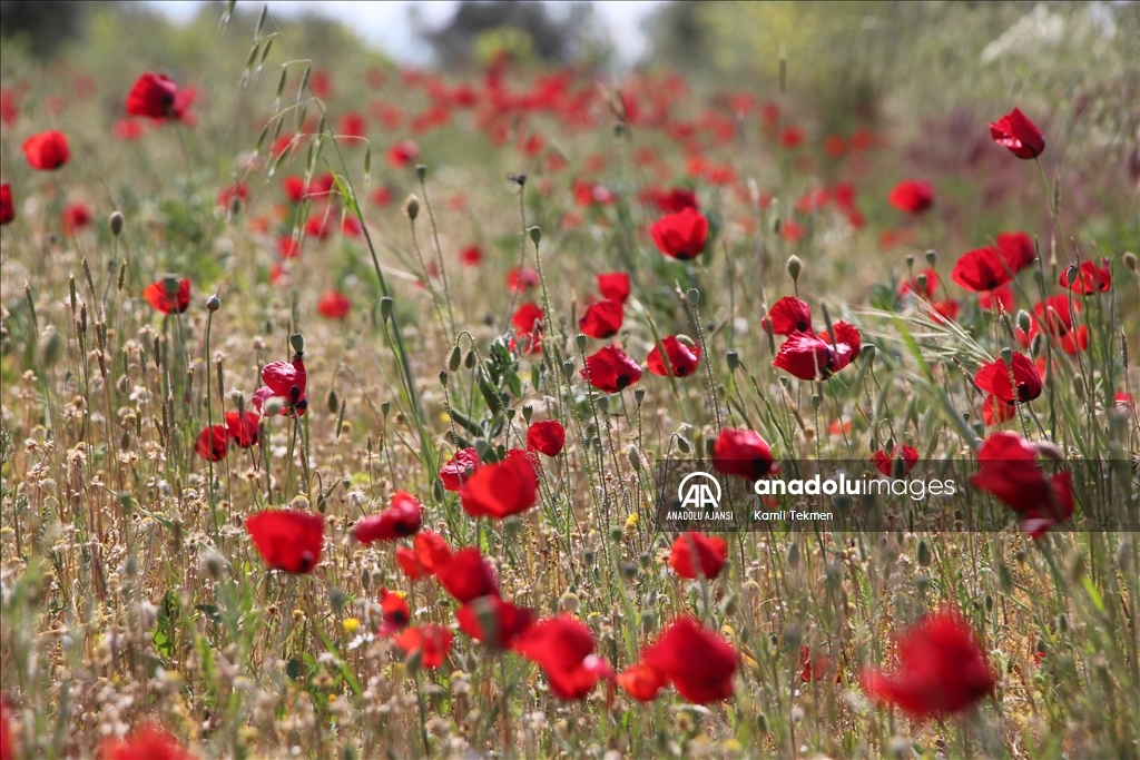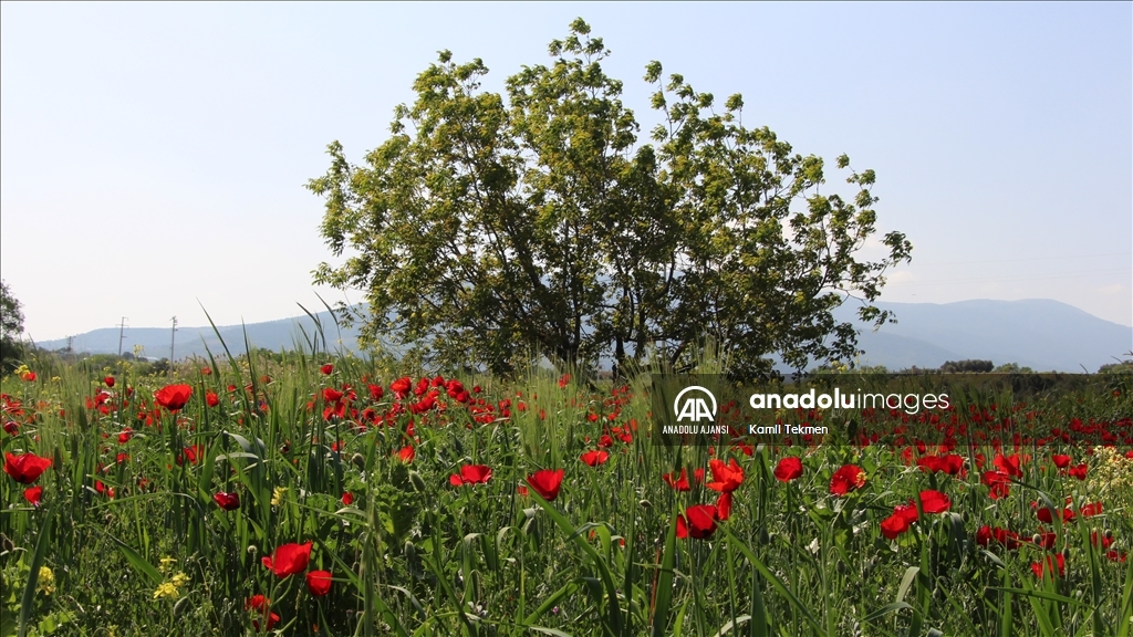 Mahalledeki bazı tarım alanlarını gelincikler kapladı.