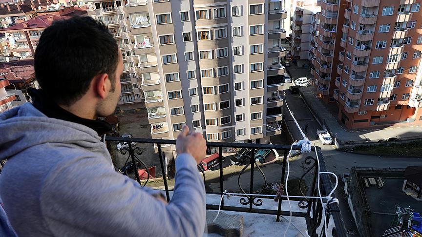 Rize'de bir firmada kurye olarak çalışan Gökhan Gökdemir, Gülbahar Mahallesi'nde yaşadığı 5 katlı apartmanda asansör olmaması nedeniyle market alışverişine çözüm arayışına girdi.